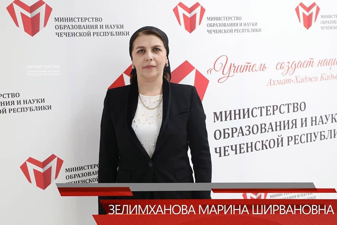 Зелимханова Марина Ширвановна, работает в сфере образования более 20 лет. Она грамотно, профессионально и оперативно решает вопросы осуществления деятельности в сфере общего образования, имеет хорошие организаторские способности, ответственно и в срок выполняет поставленные руководством задачи, трудолюбива, обладает высокой работоспособностью и мотивацией, постоянно работает над повышением своего профессионального мастерства, проявляет интерес к инновациям в системе образования.