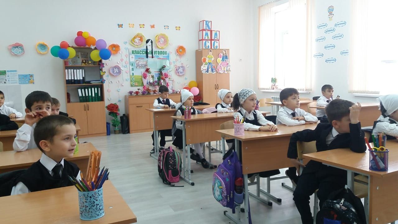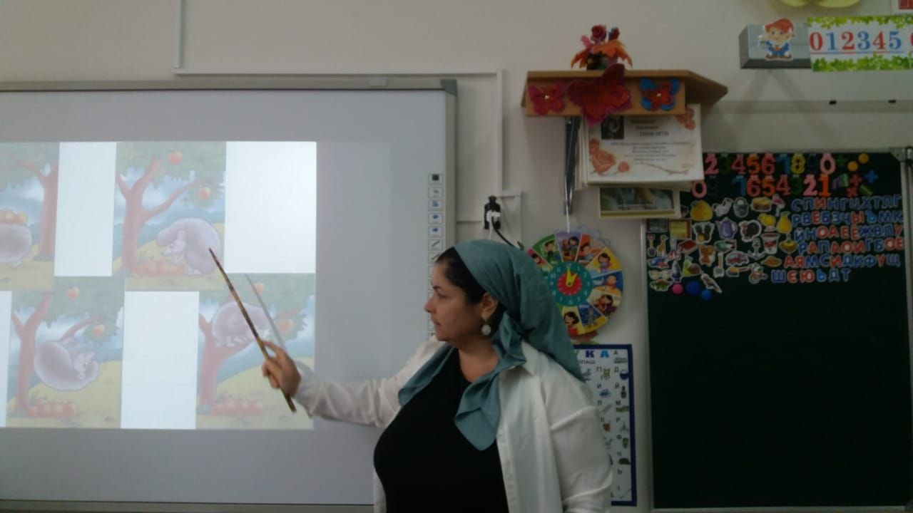 Обучающиеся 1А класса вместе с учителем Байсултановой Д.И. составляли последовательность по картинкам