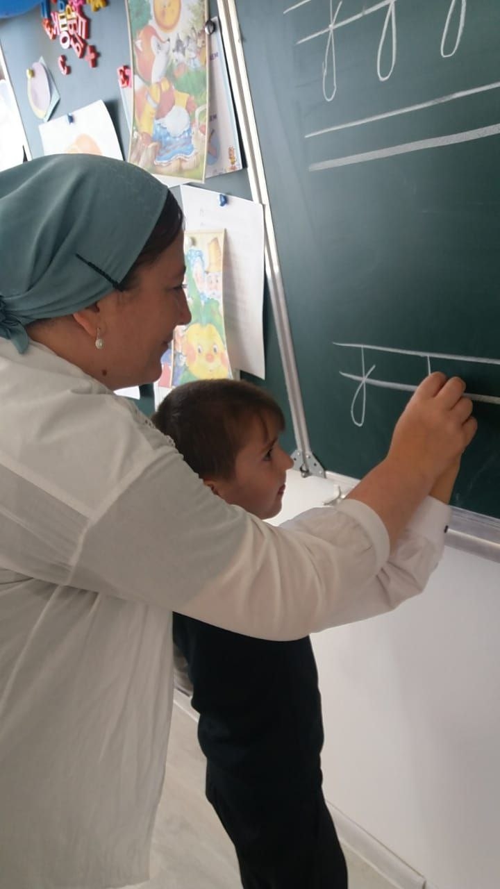 09.09.2022г в рамках ознакомления с течением адаптационного периода первоклассников администрацией школы был посещён урок обучения грамоте (письмо) в 1Б классе по теме: " Написание наклонных прямых с петлёй внизу и наклоном влево".