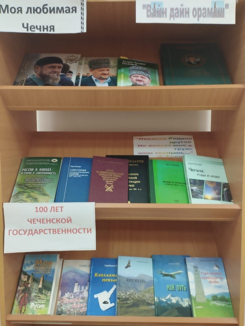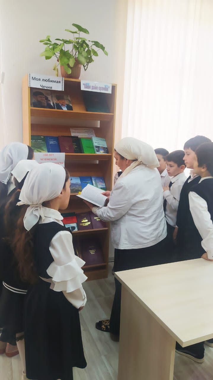 Во исполнение плана мероприятий, посвящённых 100 летию со дня образования Чеченской государственности в МБОУ "СОШ #4 с.Ножай-Юрт" состоялась выставка книг по истории Чеченской Республики "Моя любимая Чечня".