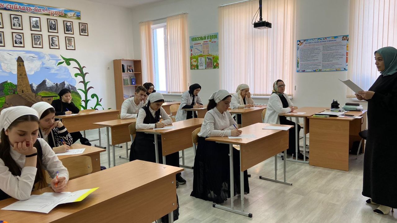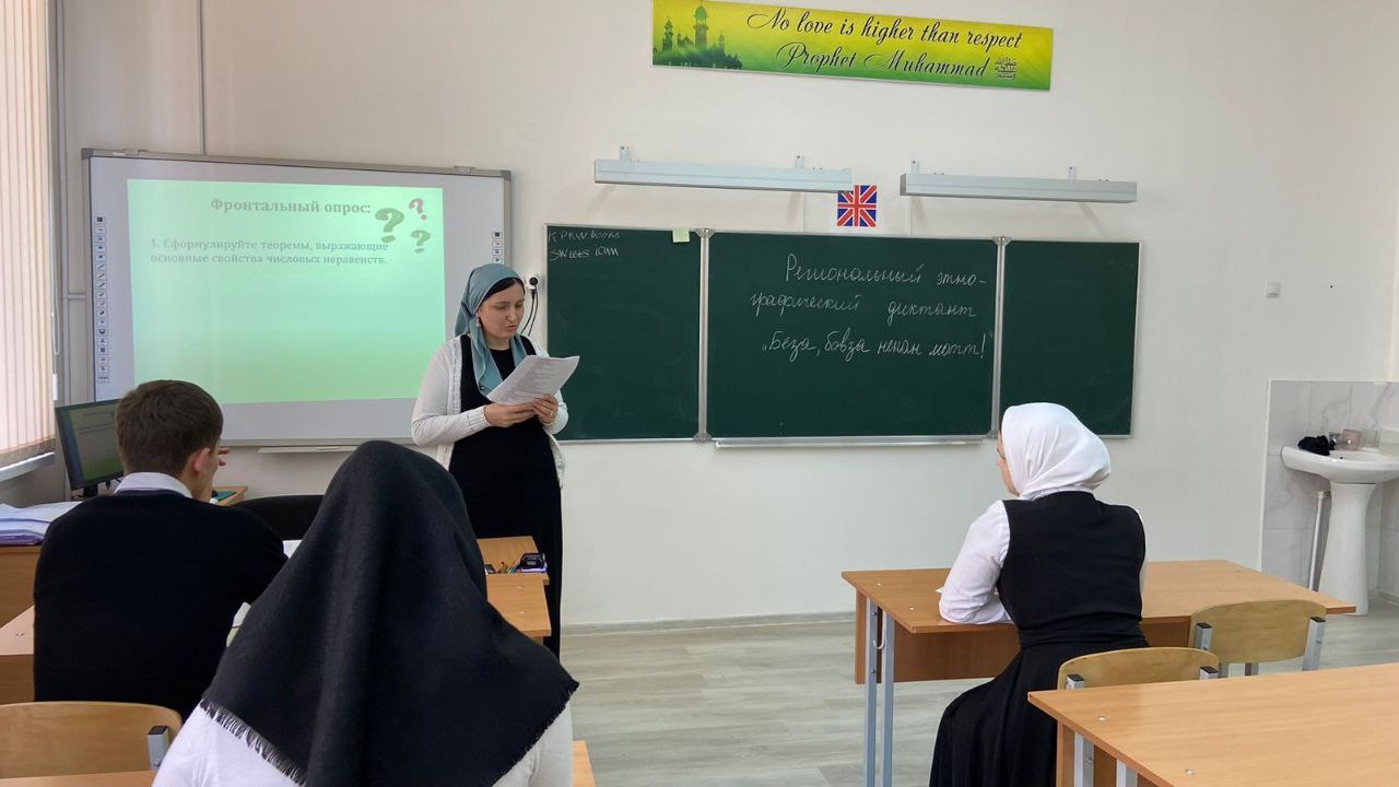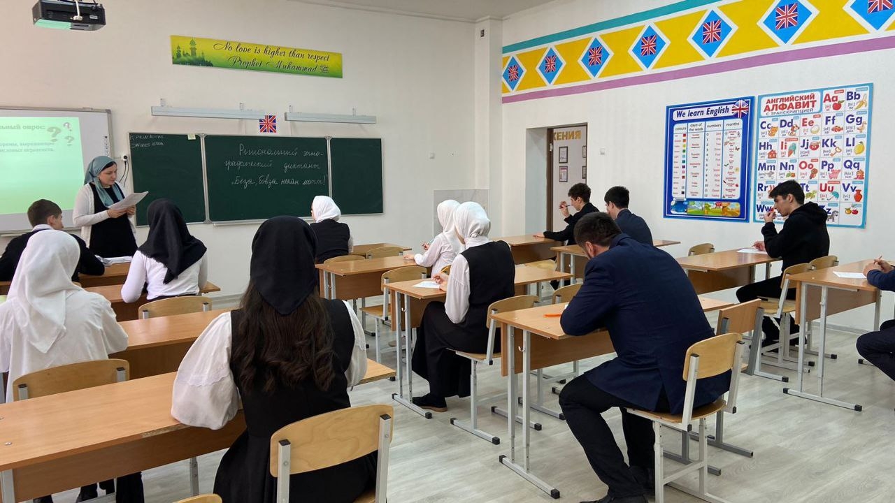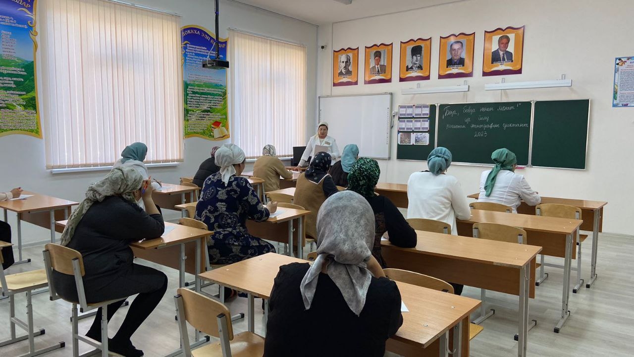 «Беза, бовза ненан мотт!» ц1е йолу регионан этнографин диктант д1айаьхьира Нажин-Юьртан лоьмар 4 йолчу йуккъерчу юкъардешаран ишколехь чиллин беттан ткъе хьалхарчу дийнахь.