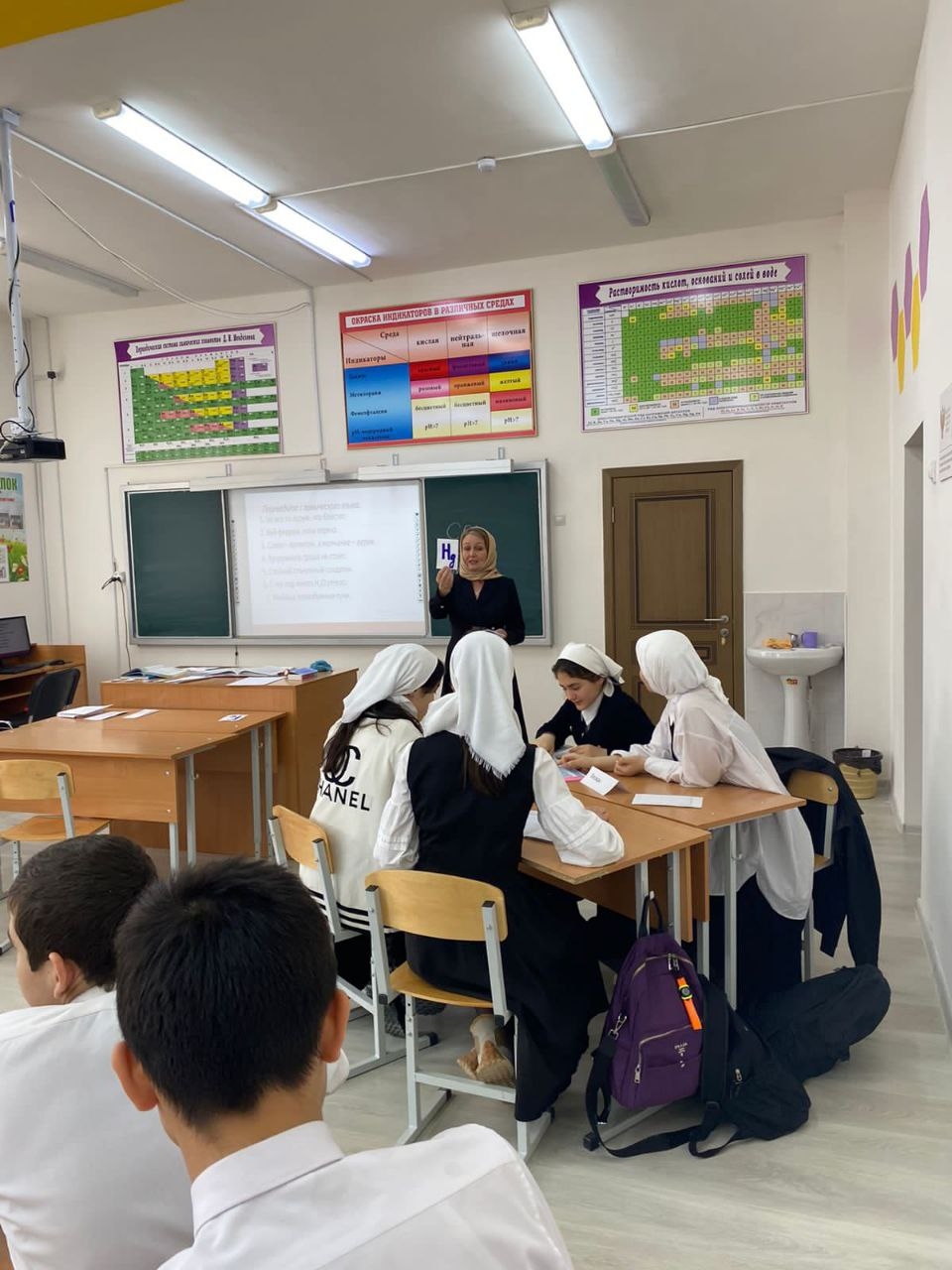 7.04.23г учитель химии и биологии Федотова В.П. в 8б классе провела открытый урок по химии ,, Основные классы неорганических веществ,, Урок был проведён в виде состязания между командами ,, Оксиды,,,