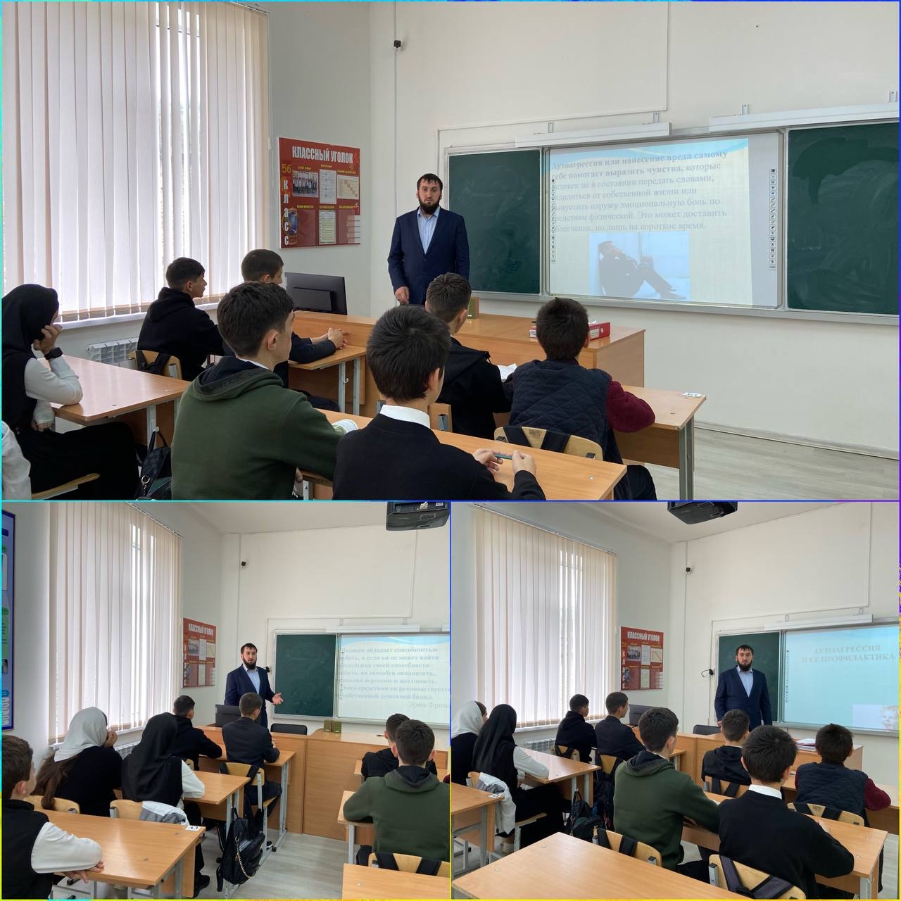 В целях исполнения письма МУ "Отдел образования Ножай-Юртовского муниципального района" #288 от 13.03.2023 года в МБОУ "СОШ #4 с.Ножай-Юрт" проведена беседа на тему "Аутоагрес