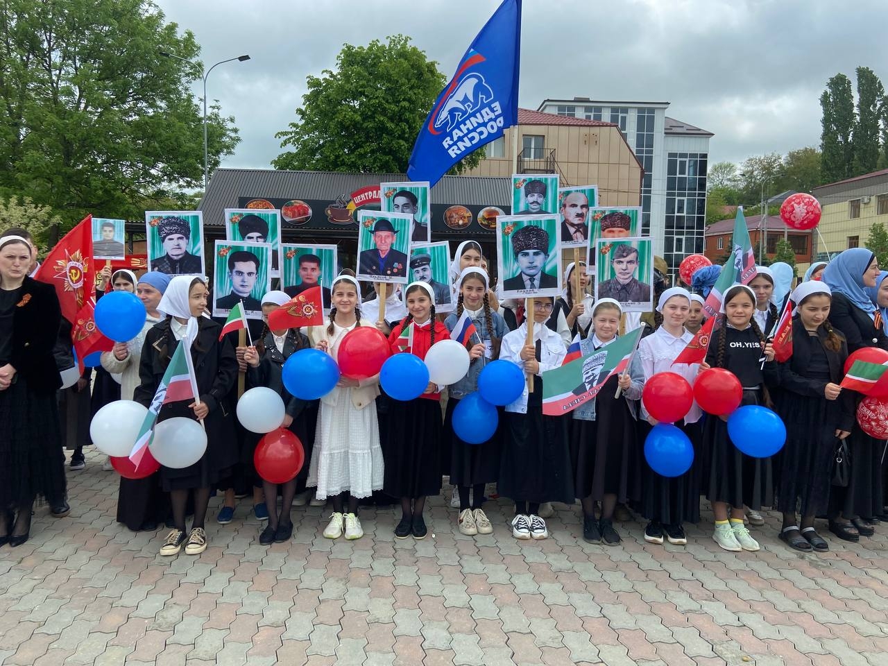 Педагогический коллектив и ученический актив нашей школы приняли участие в мероприятии ко Дню Победы, которое проходило на центральной площади с.Ножай-Юрт.