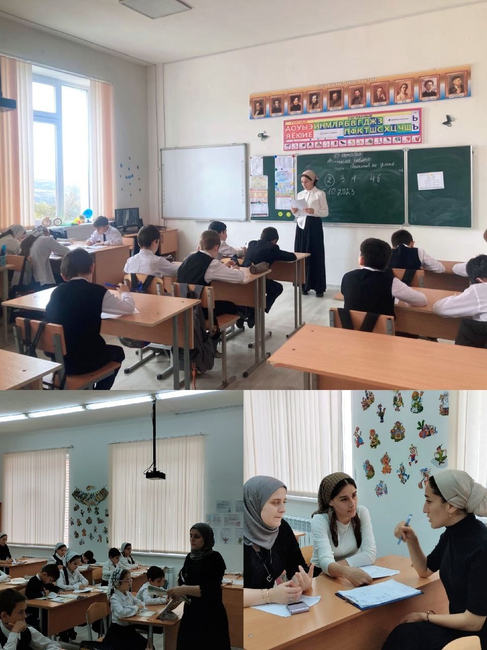 После посещения уроков состоялось заседание учителей 4- х классов. Присутствующие учителя Шерипова Лизан Андиевна и Догуева Линда Сулеймановна, совместно с заместителем директора по УВР Джабраиловой Инжилой Имрадиевной обсудили технические вопросы предстоящей в декабре 2023 г диагностики четвероклассников в формате ВПР по русскому языку, математике, окружающему миру.