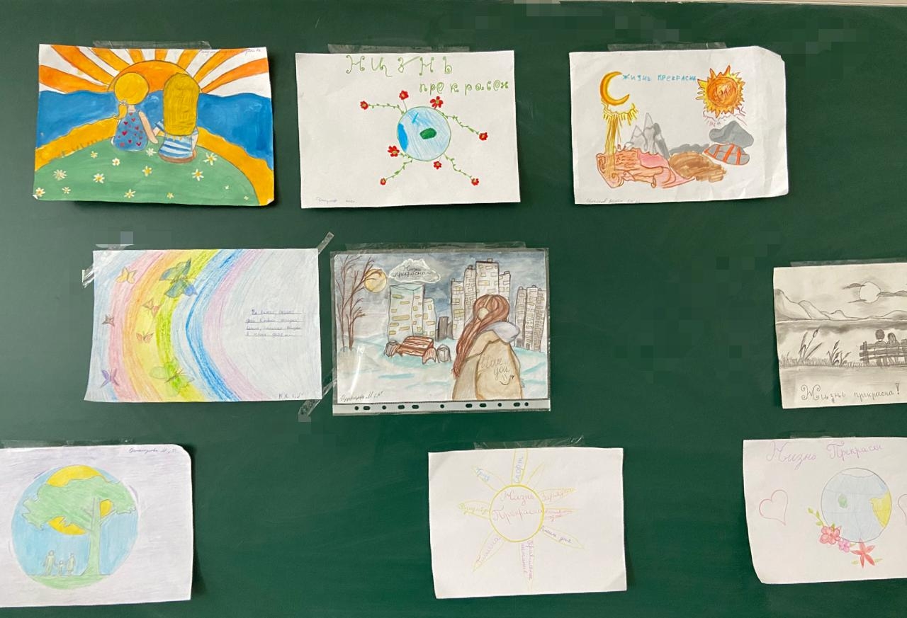Ход мероприятия: учащимся было предложено в течение недели нарисовать рисунок на тему «Жизнь прекрасна» любого формата и размера.