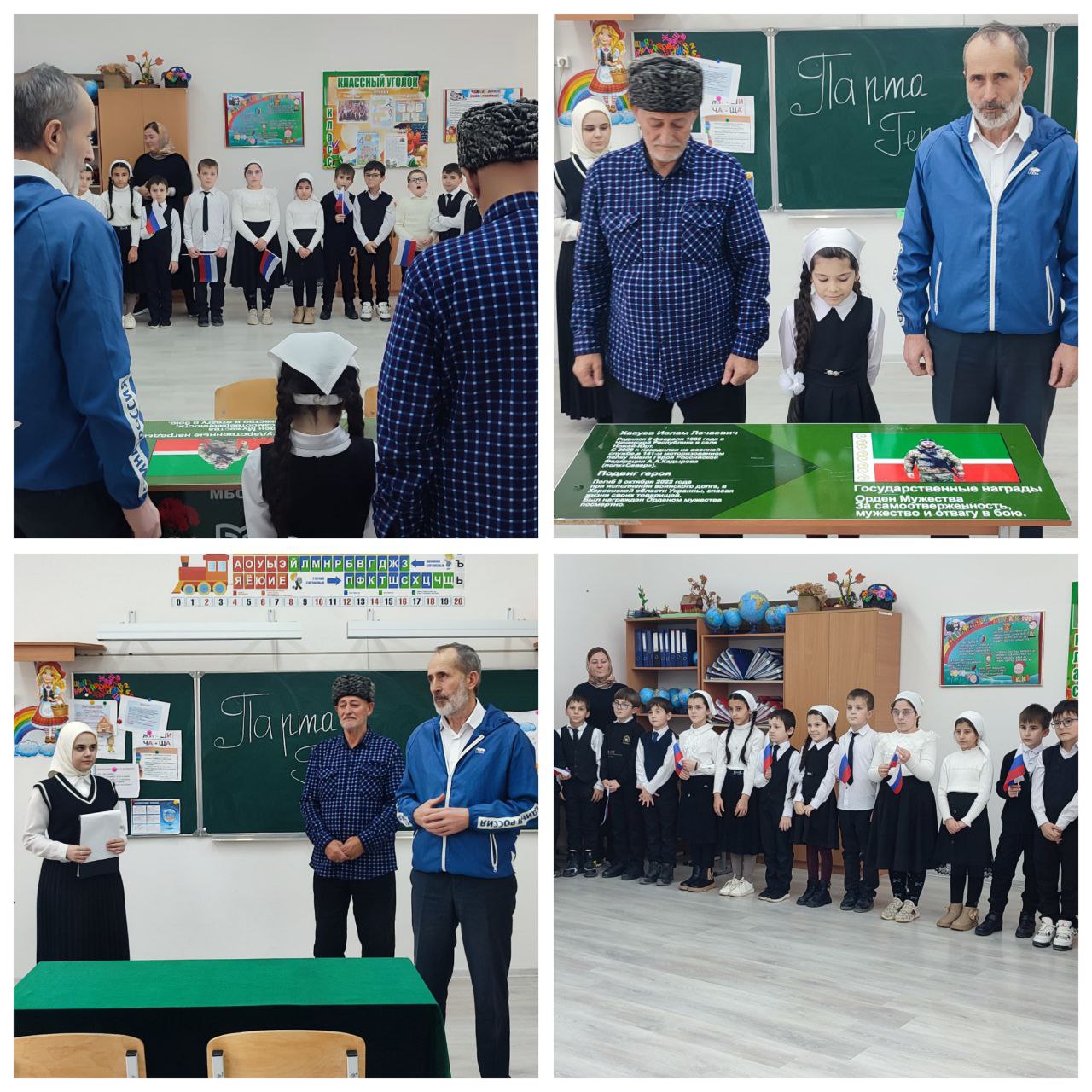 В МБОУ «СОШ #4 с.Ножай-Юрт» произошло знаменательное событие – торжественное открытие «Парты Героя» в честь уроженца села Ножай-Юрт Хасуева Ислама Лечаевича, погибшего в ходе выполнения специальной военной операции на территории Украины.