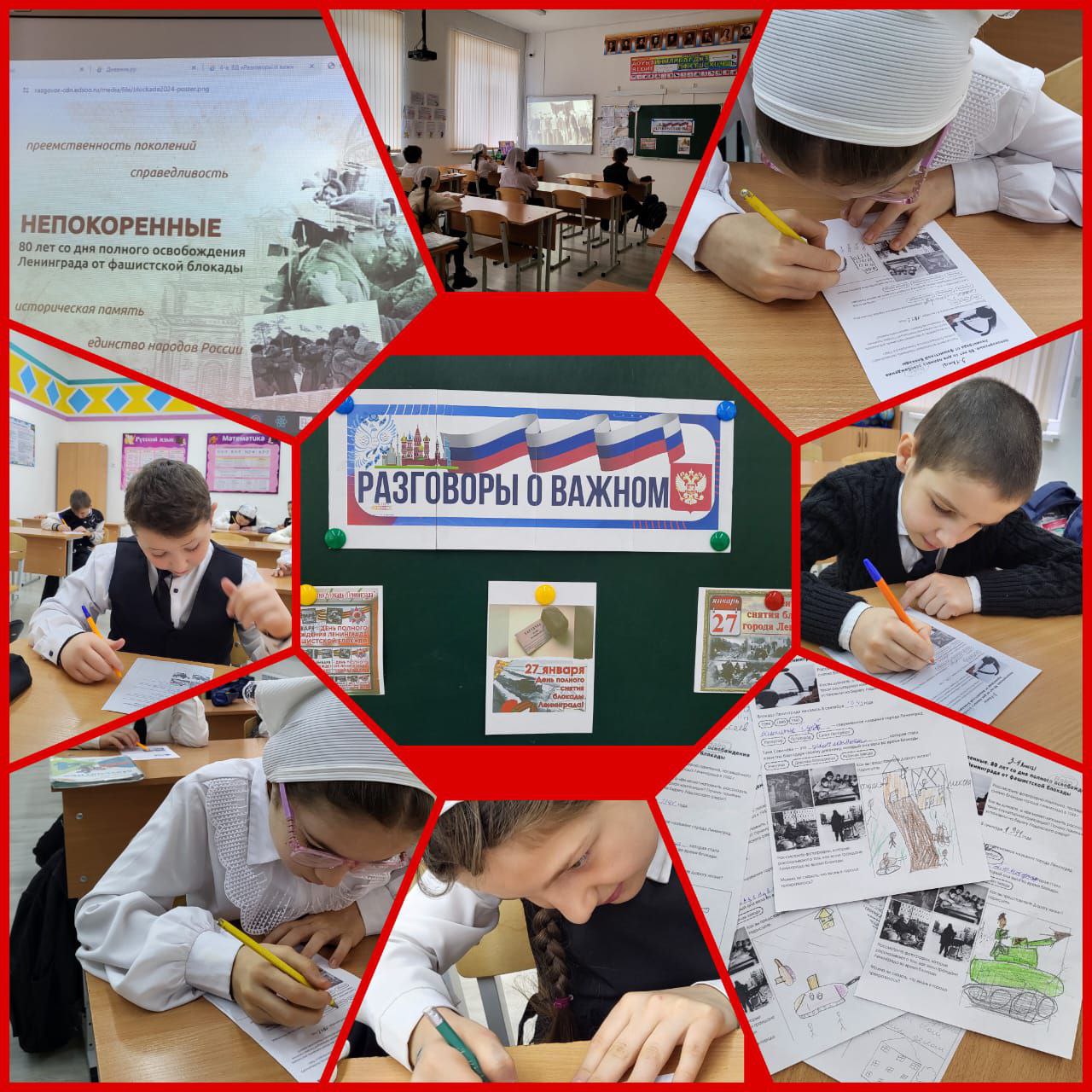 С обучающимися нашей школы сегодня говорили об освобождении Ленинграда от блокады. Беседа проводилась в рамках занятия "Разговоры о важном". Тема занятия- "Непокоренные. 80 лет со дня полного освобождения Ленинграда от фашистской блокады". Ребята узнали о подвигах ленинградцев, изучили письма того времени, а учителя напомнили, как важно помнить о событиях Великой Отечественной войны.