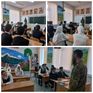 В МБОУ "СОШ #4 с.Ножай-Юрт" состоялась встреча старшеклассников с участником СВО на территорииУкраины, сотрудником ОВО Росгвардии ЧР,прапорщиком полиции Исрапиловым Зауром Юнадиевичем.