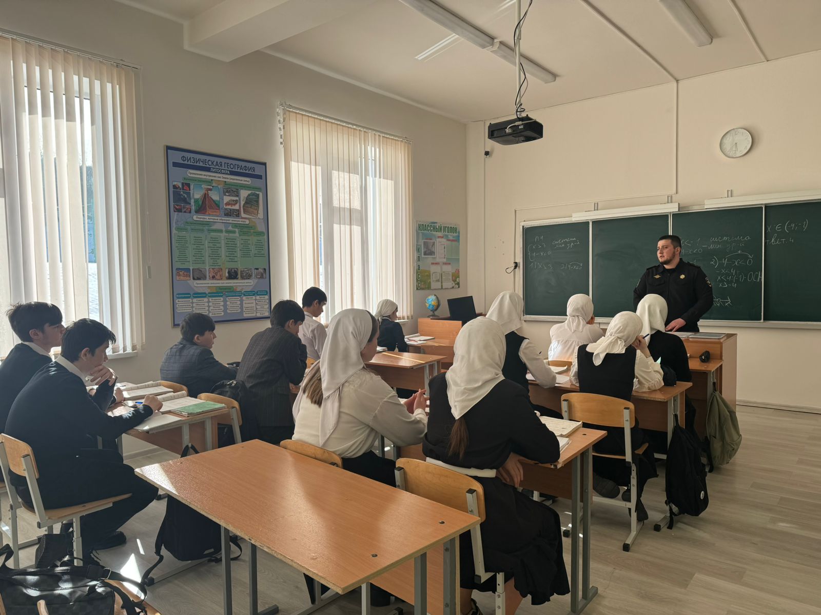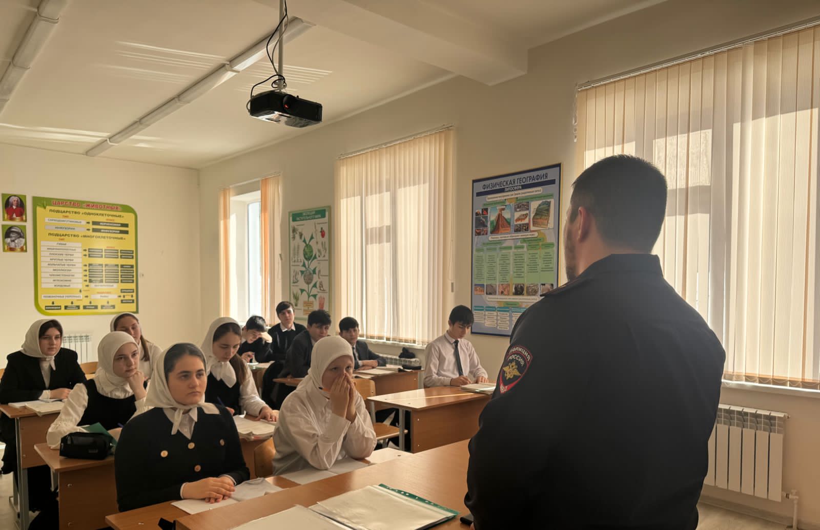 Сотрудник Ножай-Юртовского отдела МВД России по ЧР в рамках межведомственной комплексной оперативно-профилактической операции «Чистое поколение - 2024» провел беседу с учащимися школы №4 с.Ножай-Юрт.