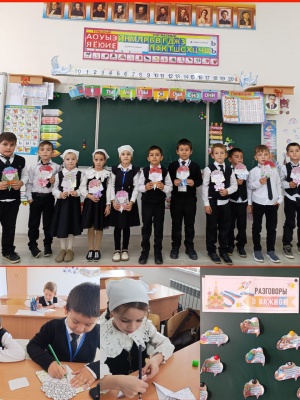 Учебная неделя в школах традиционно начинается с поднятия флагов и курса "Разговоры о важном".Так, классный руководитель 1 А класса МБОУ "СОШ #4 с.Ножай-Юрт" Догуева Л.С. провела в