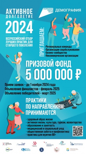 1 октября, в Международный день пожилых людей стартовал новый сезон Всероссийского отбора лучших практик для старшего поколения (Активное долголетие – 2024), организованный АНО «Национальные приоритеты» совместно с Министерством труда и социальной защиты России по нацпроекту «Демография».