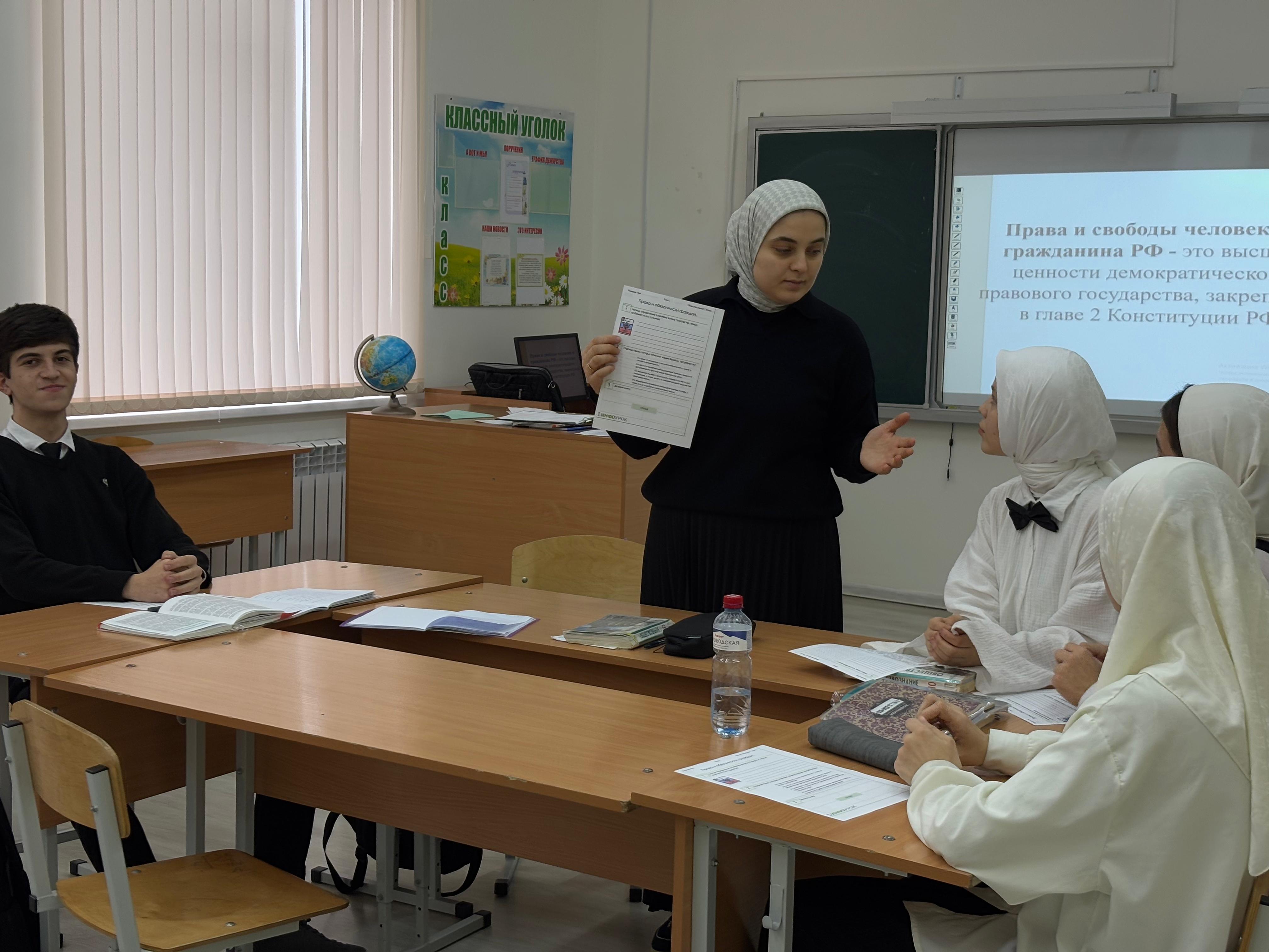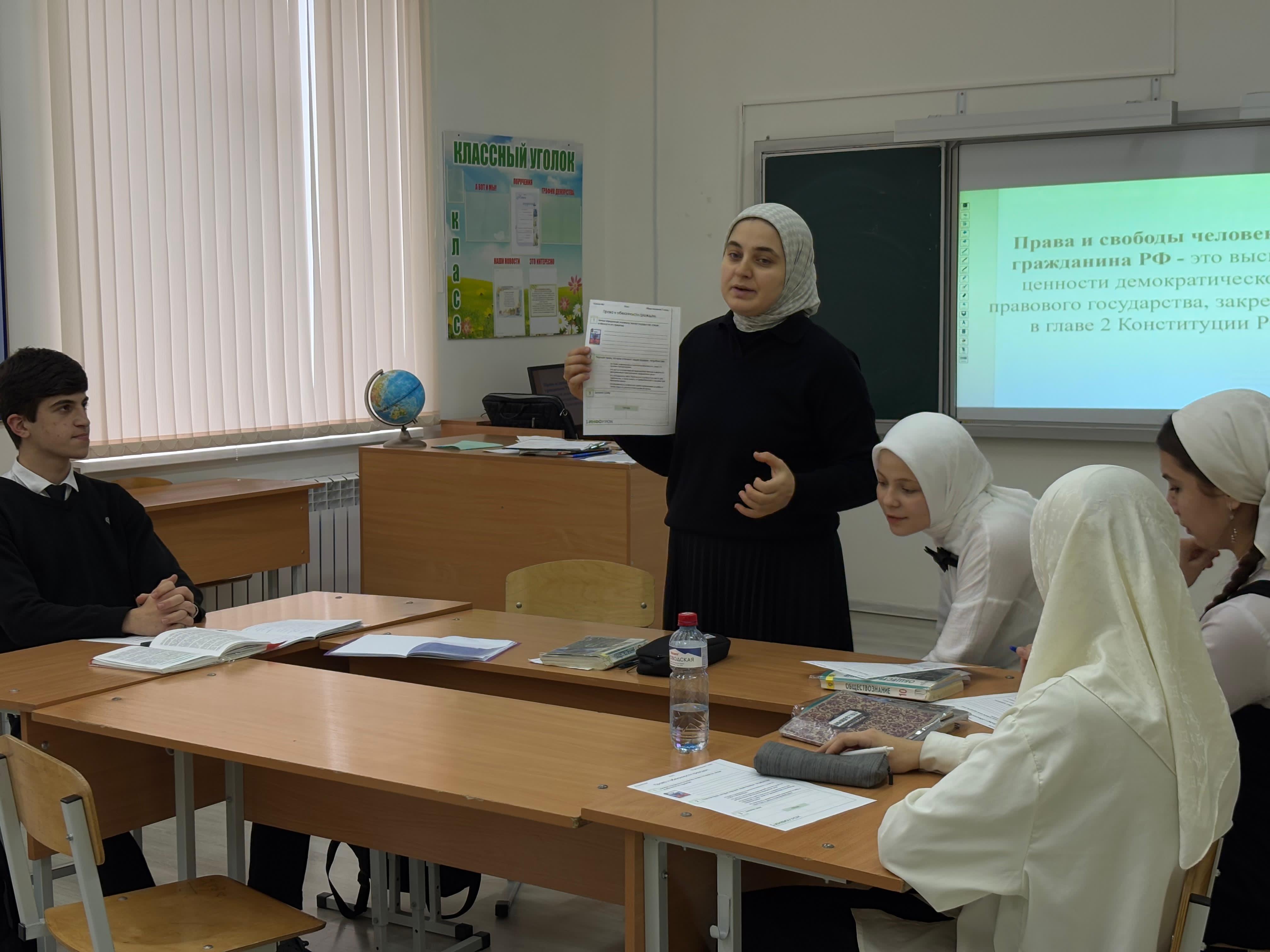 В рамках данного проекта в МБОУ «СОШ 4 с. Ножай-Юрт» в 10 «а» проведён открытый урок в форме круглого стола, на тему «Права и свободы человека и гражданина».