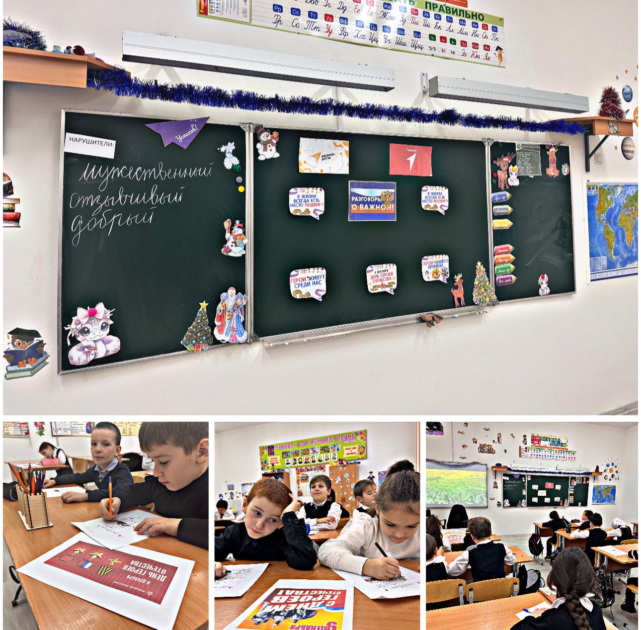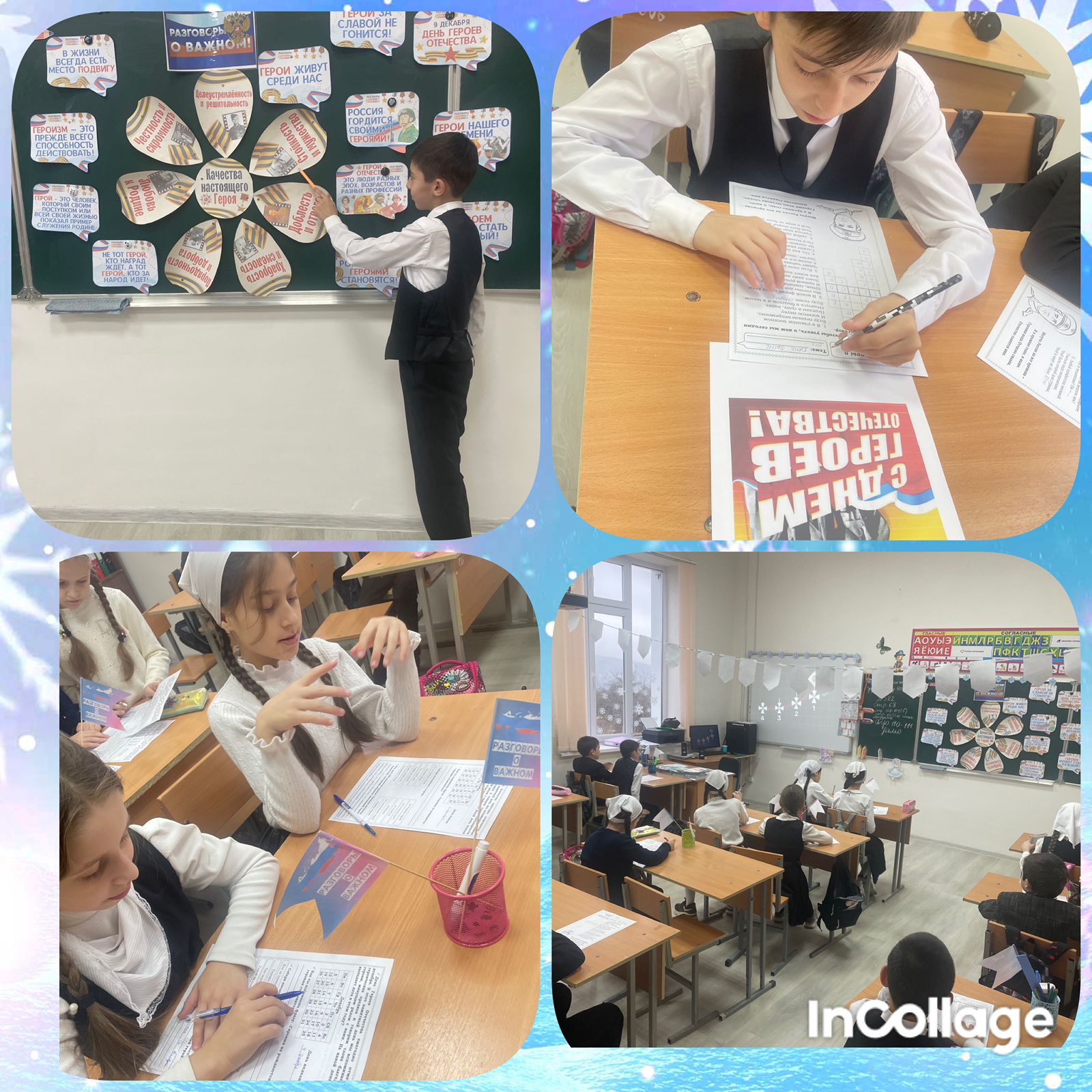 По понедельникам традиционно в школе проводятся внеурочные занятия "Разговоры о важном". Сегодня на занятиях говорили о Героях нашего Отечества.