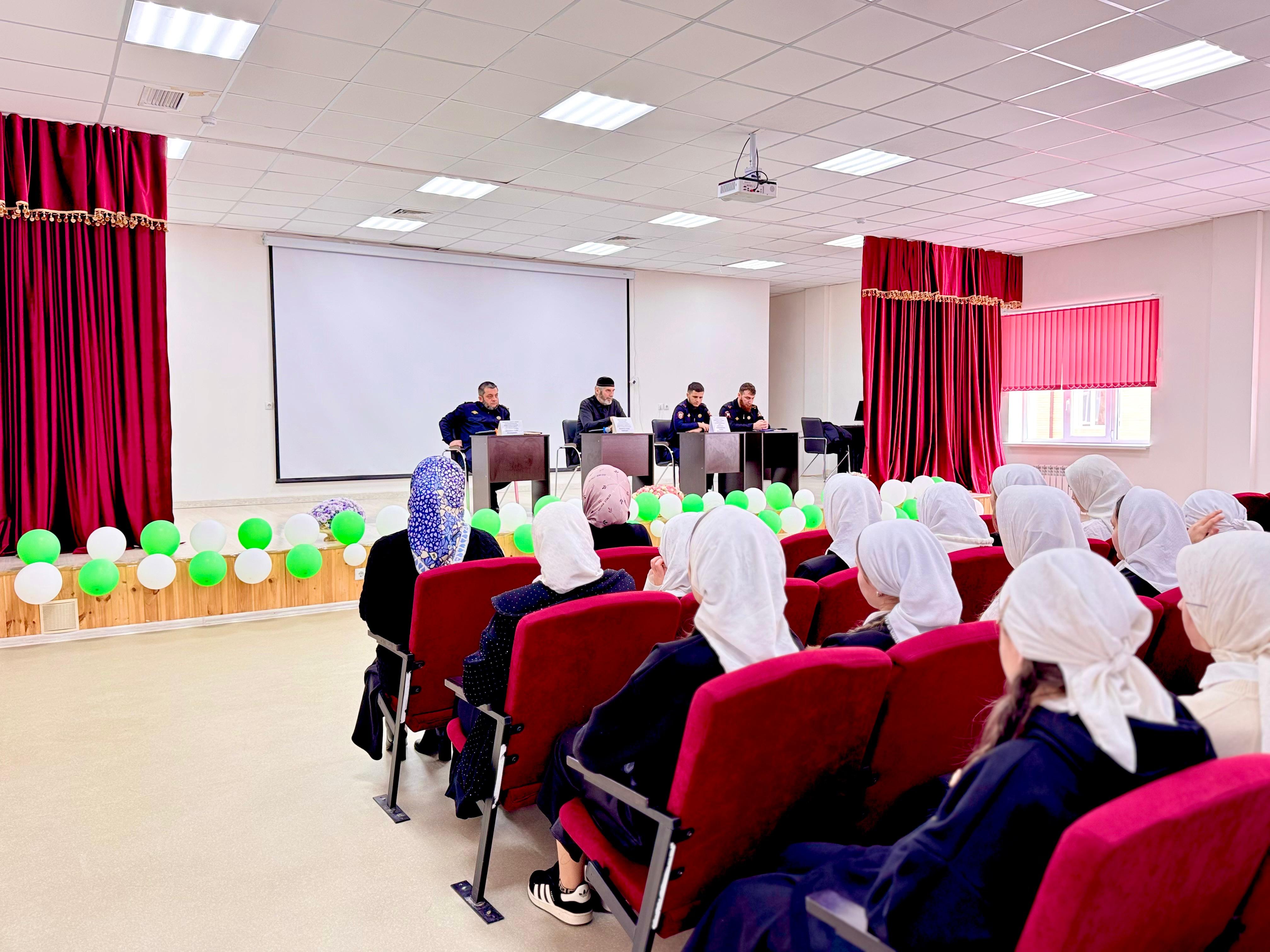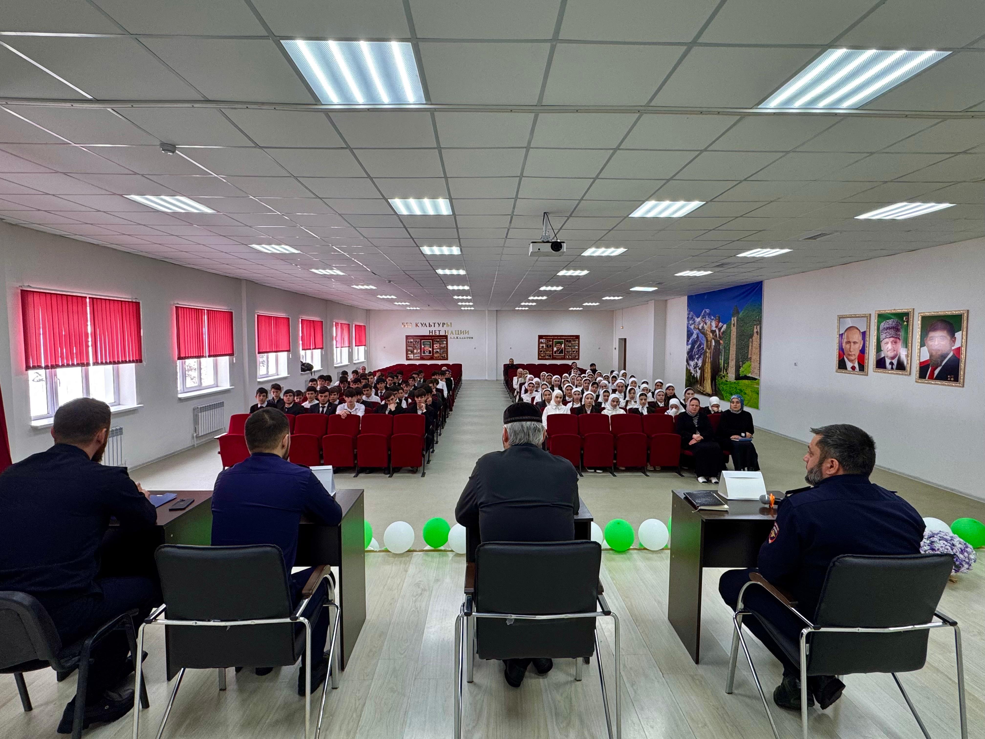 06.03.2025Сегодня, 6 марта 2025 года, в актовом зале нашей школы с целью профилактики правонарушений и преступлений, совершаемых несовершеннолетними, была организована встреча старшеклассников с заместителем главы администрации района, председателем Комиссии по делам несовершеннолетних Исмаиловым А.У., начальником ОПДН ОМВД России по Ножай-Юртовскому району Шапиановым А.А,инспекторами ПДН и ГАИ отдела МВД России по Ножай-Юртовскому району ЧР.Ахмет Увайсович рассказал учащимся о важности соблюдения уважительного отношения к людям старшего поколения, родителям и учителям. Призвал соблюдать правила поведения, предписанные в исламе. Отметил вред, которые наносят лжепроповедники, целью которых является расколоть мусульманскую умму. Предупредил учащихся не проводить бесполезно время в социальных сетях и на вредоносных сайтах, а стремиться к получению знаний.В своей беседе гости также коснулись ответственности за совершение таких преступлений, как кража, грабеж, вымогательство, причинение телесных повреждений. Подросткам было разъяснено, с каких лет наступает уголовная ответственность и какие наказания применяются за совершение преступлений. Адам Алхазурович настоятельно рекомендовал соблюдать правила поведения на улице, в общественных местах, местах массового отдыха. Он напомнил школьникам о вреде употребления спиртных, энергетических напитков и табака, а также объяснил, чем опасны эти пагубные привычки.