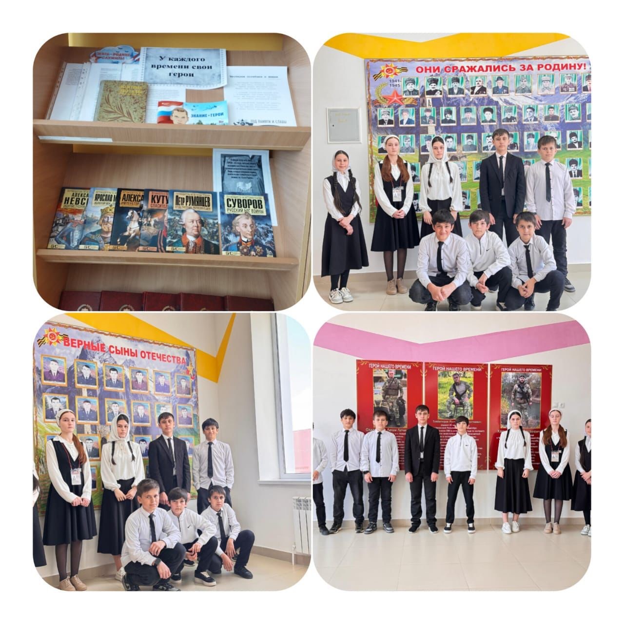 17.04.2025В школьной библиотеке открылась книжно-иллюстрированная выставка «У каждого времени свои герои», посвящённая 80-летию Победы в Великой Отечественной войне и Году защитника Отечества.