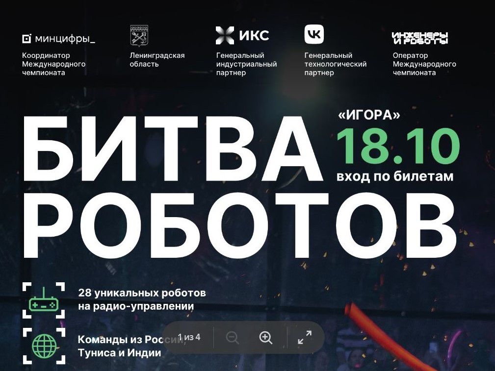 18 октября пройдет третий отборочный этап Международного чемпионата по битве роботов сезона 2025 года. Цель Чемпионата – популяризация в Российской Федерации инженерной мысли как драйвера развития и поддержки современных цифровых технологий.