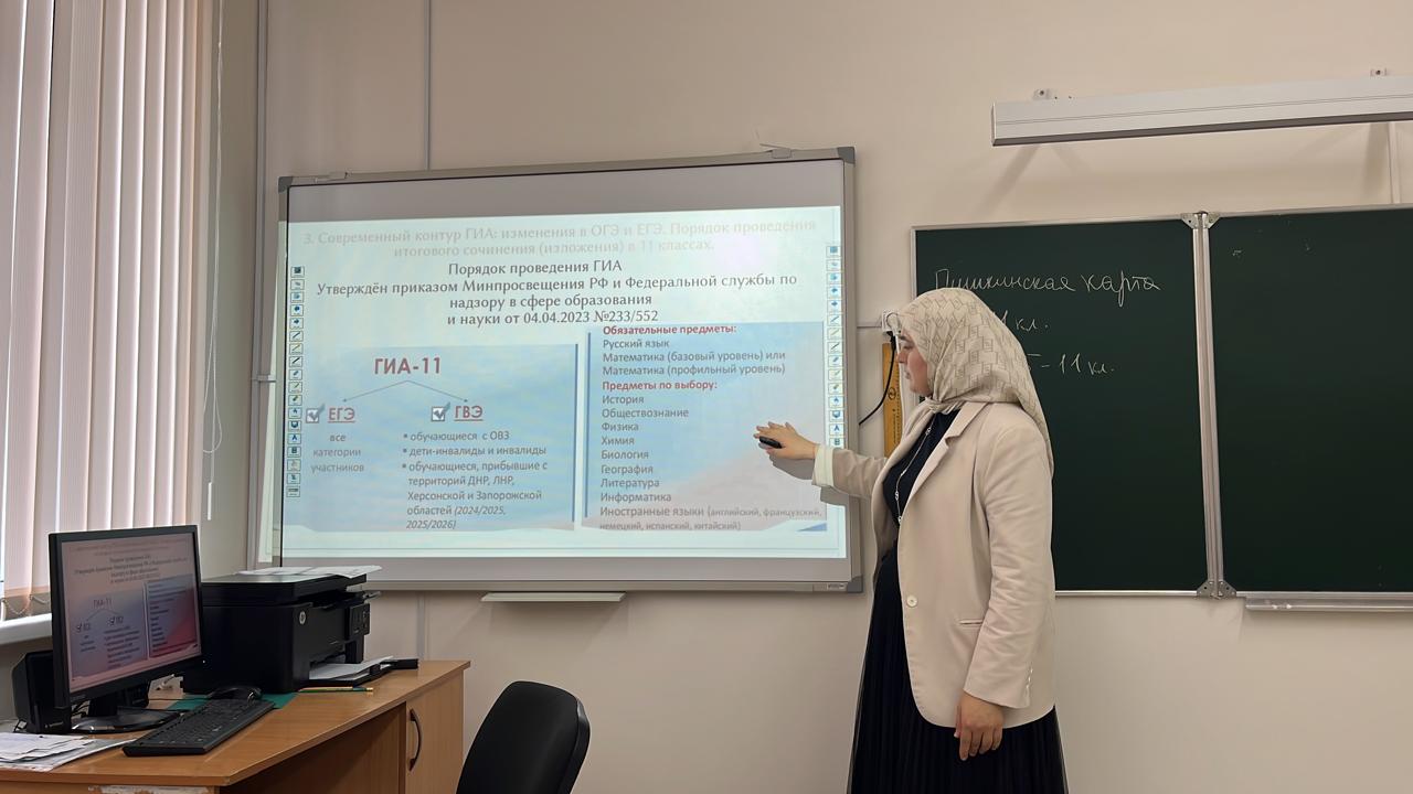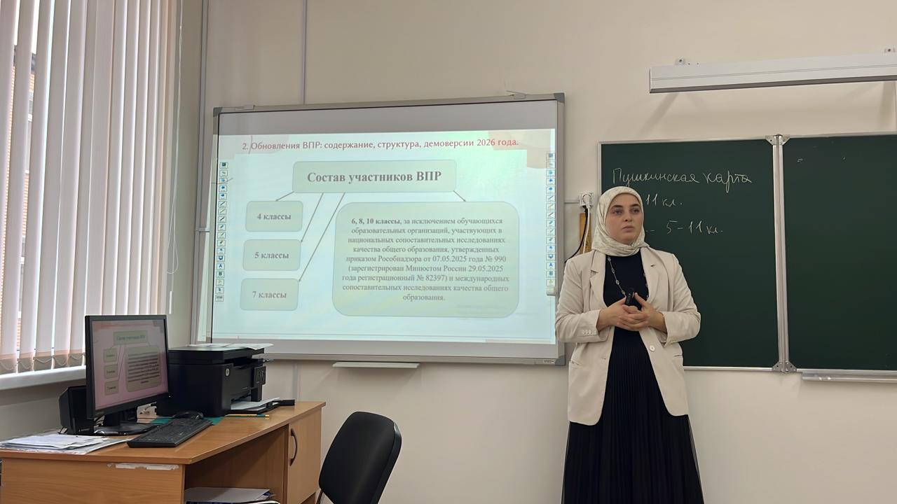 17 ноября завуч школы Джабраилова Э.И провела семинар-совещание на тему: «Изменения в ВПР, ОГЭ, ЕГЭ в 2025-2026 учебном году», а также рассматривались вопросы организации работы в Цифровом образовательном контенте.
