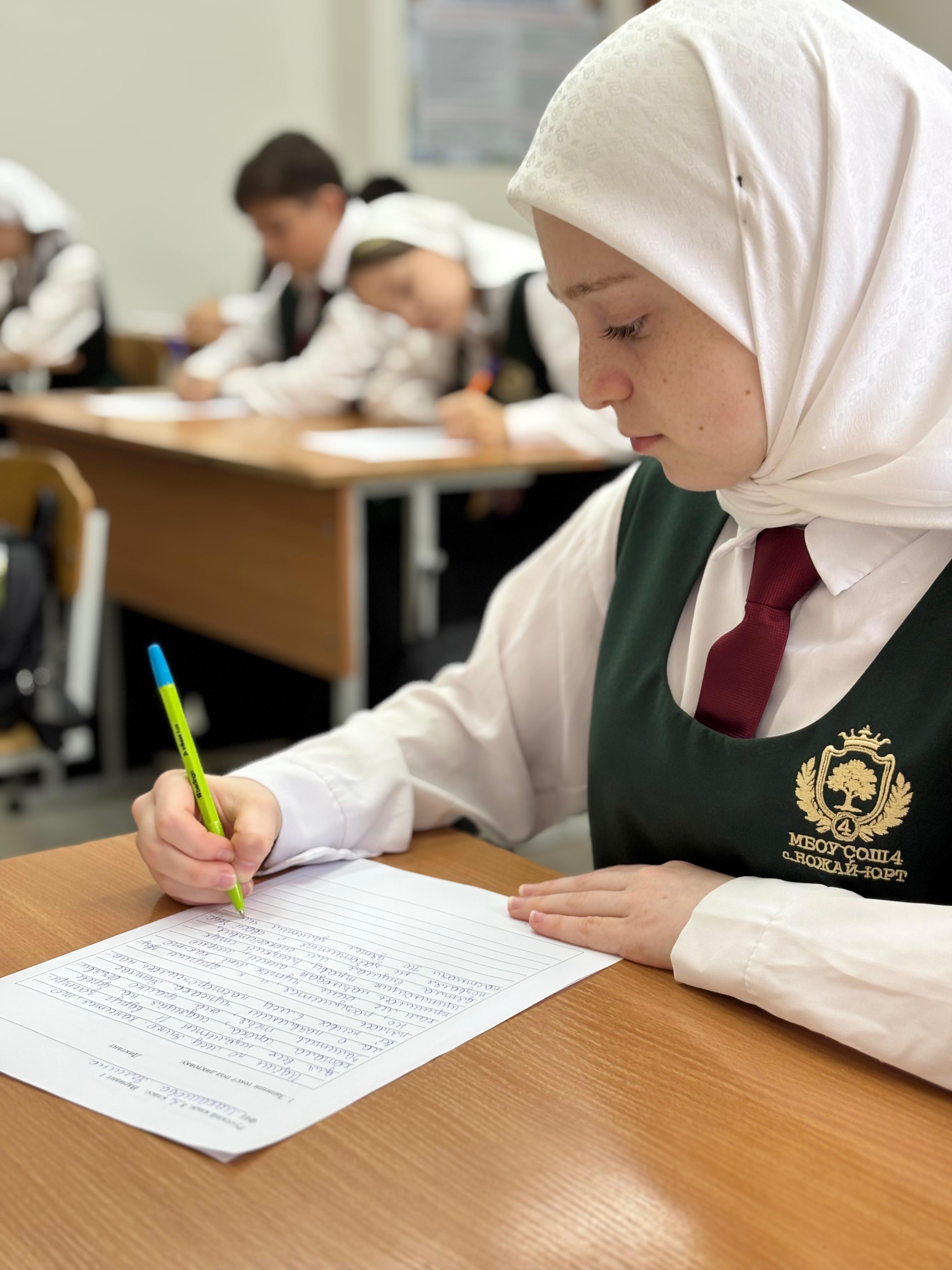 Сегодня, 8 декабря 2025 года, наши восьмиклассники писали региональный диктант по русскому языку. Региональный диктант инициирован Центром оценки качества образования министерства образования и науки Чеченской Республики в целях диагностики знаний обучающихся.