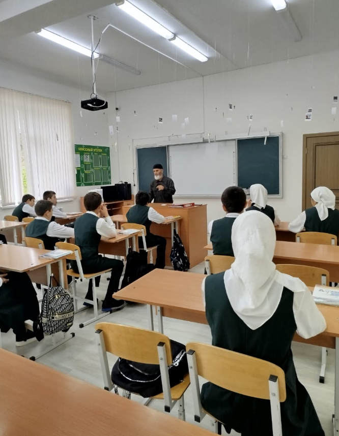 12.12.2025г. педагог ДНВ Адаев Д.А. провел беседу для обучающихся 7 «а» и 10-х классов на тему: «Ислам и экстрасенсорика.», охват-42 чел.