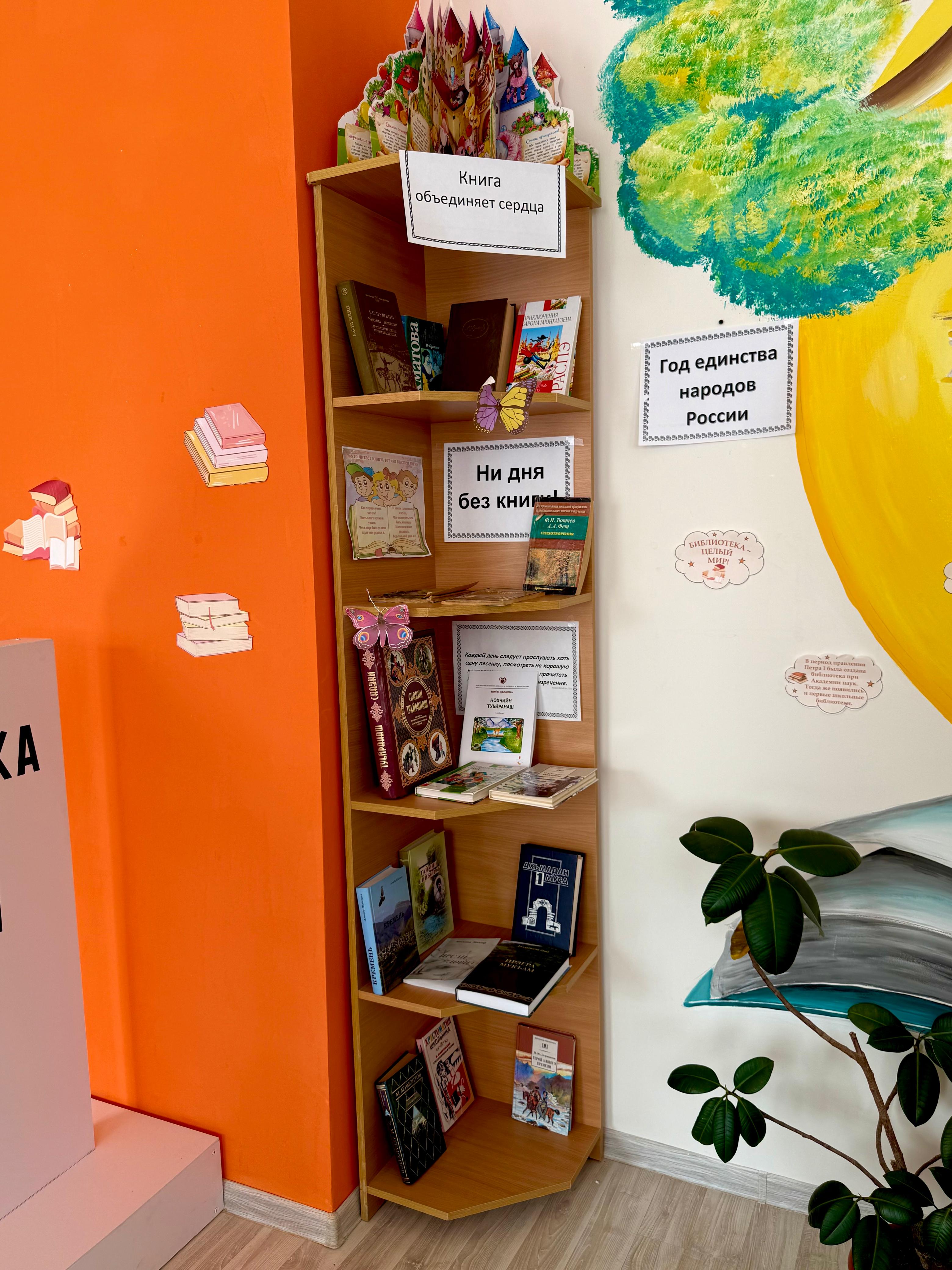 В рамках Года Единства народов России дети посетили книжную выставку «Книга объединяет сердца», организованную в библиотеке. Ребята с интересом рассматривали книги, представленные на выставке, знакомились с литературой о культуре, традициях и истории народов нашей страны.